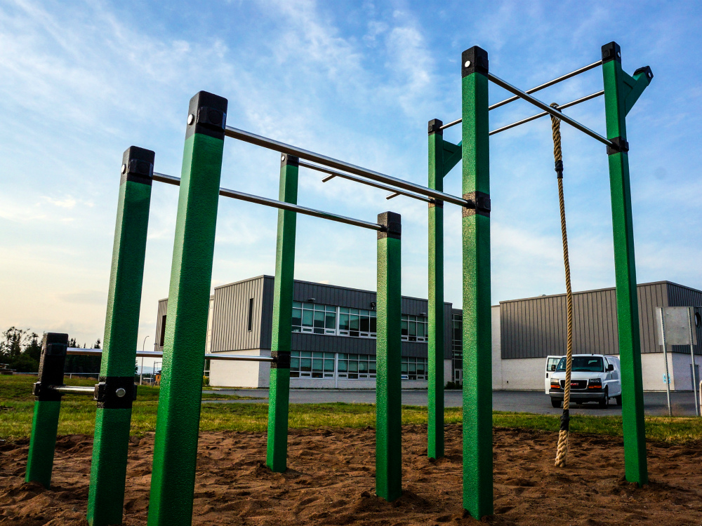 Une station d’exercice statique et polyvalente adaptée pour une clientèle plus jeune nécessitant que le poids corporel de l’utilisateur pour performer des exercices fonctionnels en plein air accessible pour tous. Il s’agit d’exercices de conditionnement physique, d’échauffement et d’étirement approuvés par des kinésiologues certifiés. Il s'agit de la version adaptée de notre module ABZ-01 pour une clientèle plus jeune.