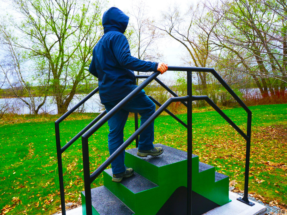 Notre pyramide est idéale pour accompagner les personnes à mobilité réduite à venir bouger à l’extérieur. La montée et descente des marches permet de solliciter tous les muscles du bas du corps tout en profitant du grand air.