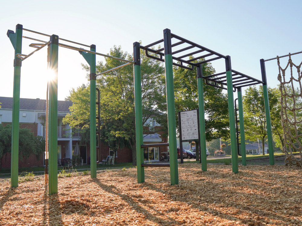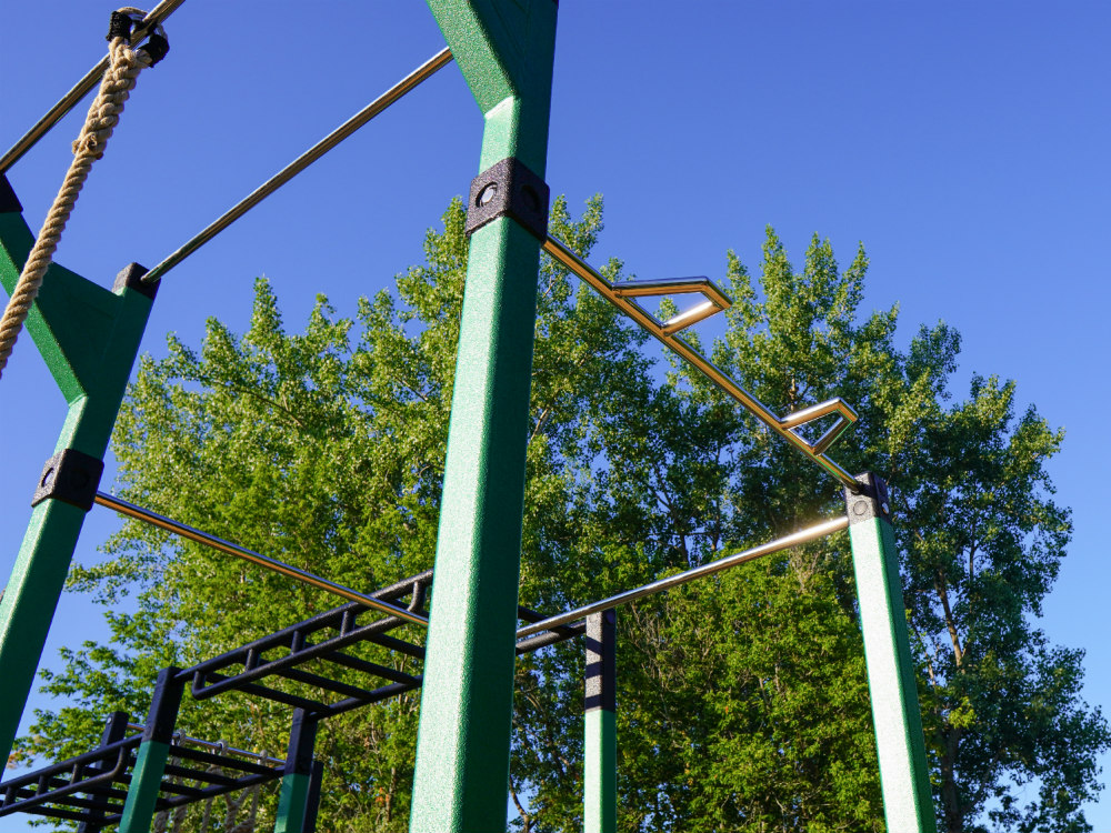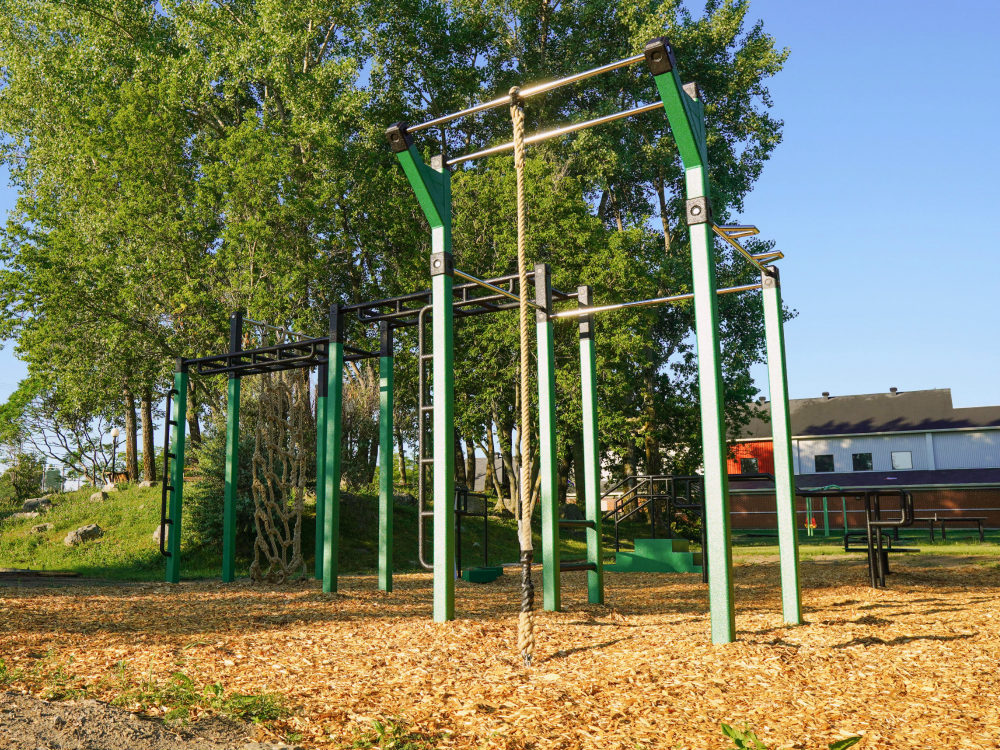Une station d’exercice statique et polyvalente nécessitant que le poids corporel de l’utilisateur pour performer des exercices fonctionnels en plein air accessible pour tous. Il s’agit d’exercices de conditionnement physique, d’échauffement et d’étirement approuvés par des kinésiologues certifiés.